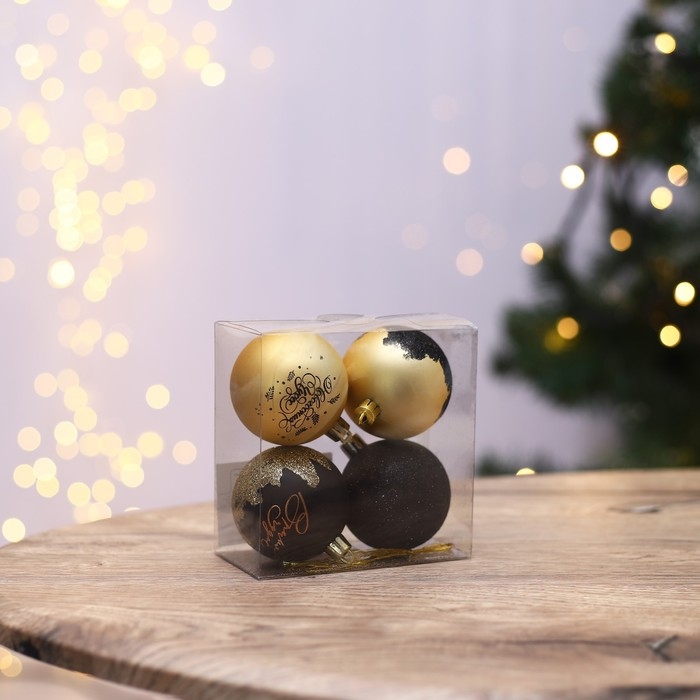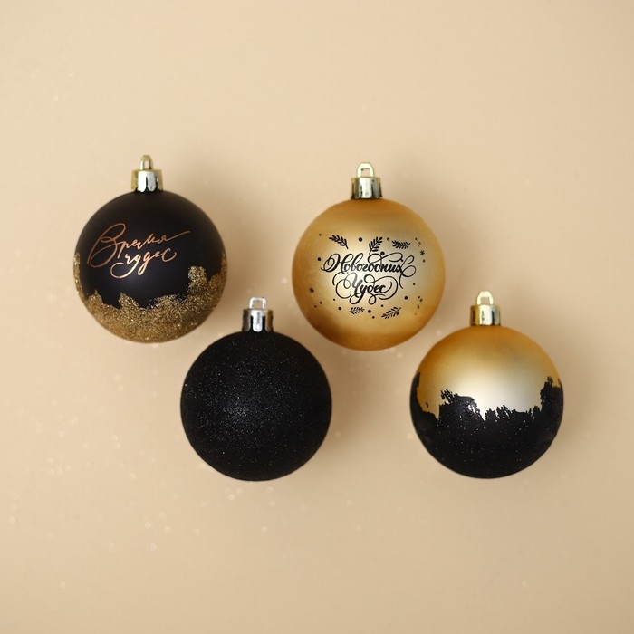 Шары ёлочные новогодние «Новогодних чудес», на Новый год, пластик, d=6, 4 шт., цвет черное золотой