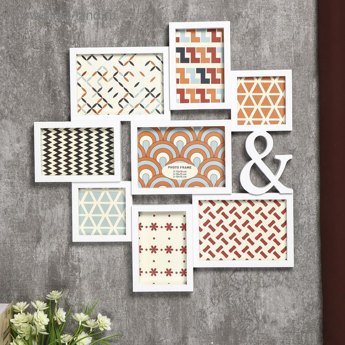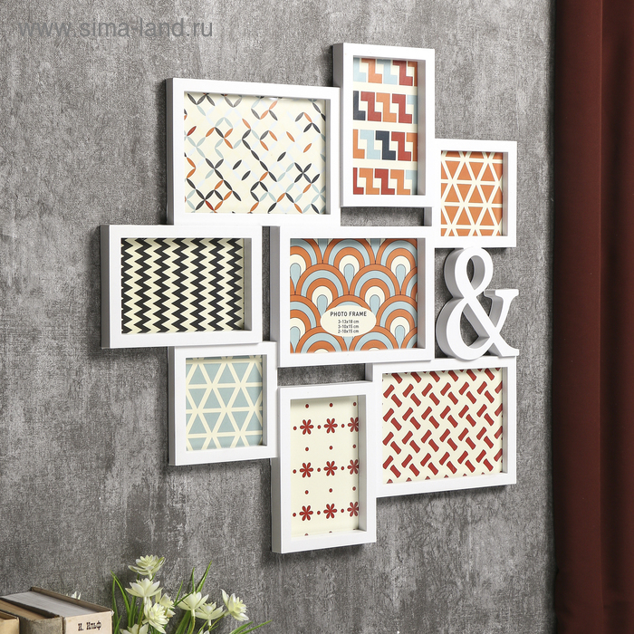Фоторамка пластик на 8 фото 10х10, 10х15, 13х18 см "&" белая 50,5х51,5х2 см