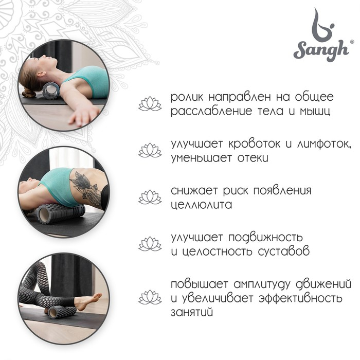 Роллер для йоги — спортивный инвентарь, который помогает настроить мышцы на работу перед тренировкой, удерживать правильное положение тела во время неё и ослабить боль в мышцах и суставах после. Параллельно способствует восстановлению всего организма. Ролик позволяет практиковать миофасциальное расслабление (МФР). Использование изделия становится доступной альтернативой массажной терапии.