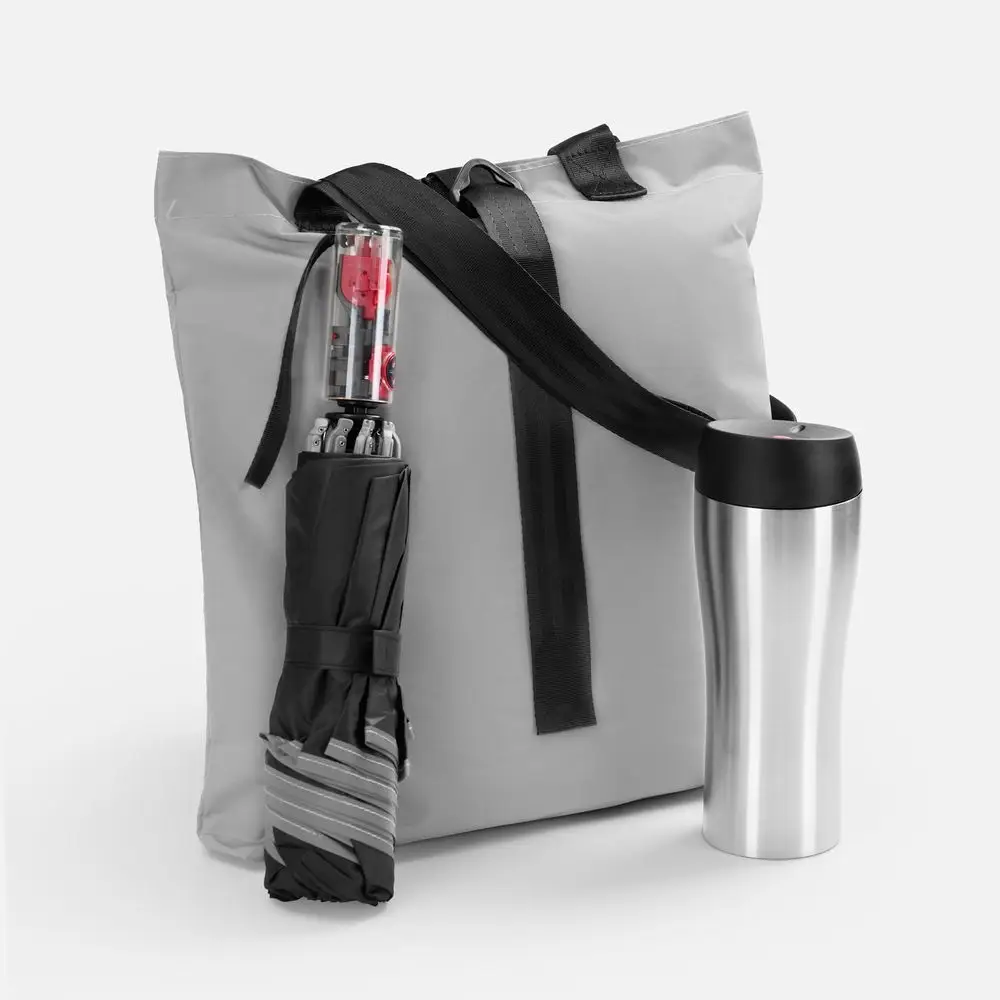 В набор Future Manifest входят необычный складной зонт наоборот и вакуумный термостакан, который долго держит температуру напитка, упакованные в шопер из светоотражающей ткани — идеальный аксессуар для комфортных и безопасных прогулок в любое время суток.