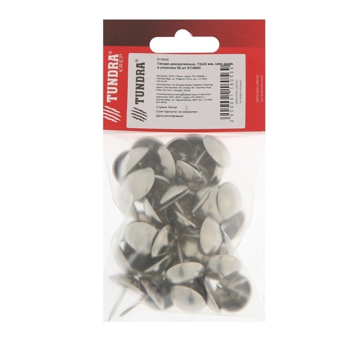 Гвозди ТУНДРА, декоративные, обивочные, 19х22 мм, хром, фасовка 50 шт