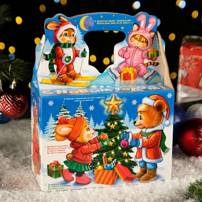 Упаковка для подарка является неотъемлемым атрибутом любого подарка. Подобранная со вкусом упаковка придаст подарку еще большую ценность. Материал изделия - картон. Коробка складная прекрасно подойдет для оформления подарка на - Новый год. Наполнить можно конфетами и различными новогодними сувенирами. Оригинальный рисунок на коробке придаст праздничное настроение.