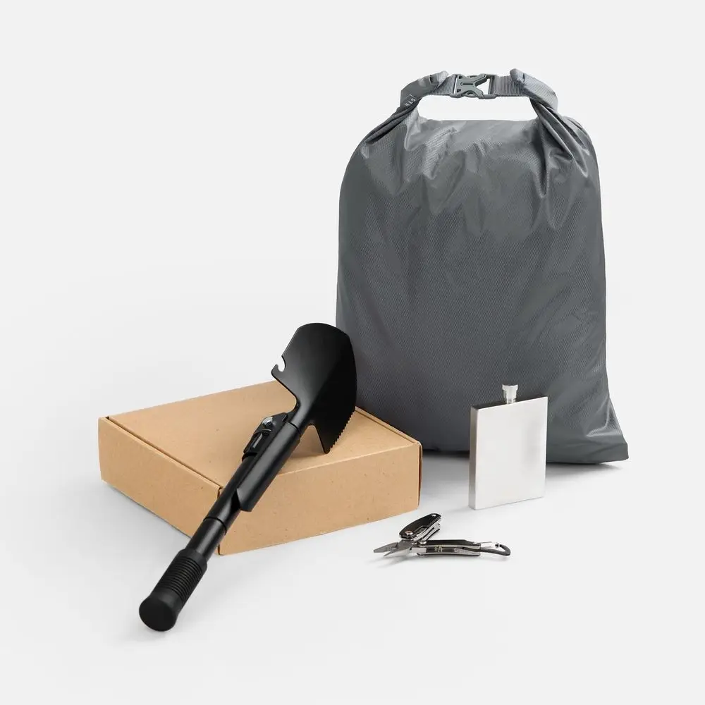 Набор Brutaliteam для тех, кто ценит свободу и не боится приключений. В комплект входят компактная многофункциональная лопата, складной мультитул, прочная фляжка и водонепроницаемый рюкзак, который надежно защитит вещи в любых условиях.