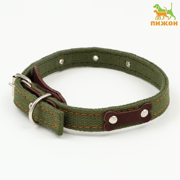Ошейник брезентовый двухслойный, 72 х 3,5 см, ОШ 45-60 см, хаки