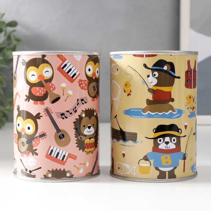 Копилка металл банка "Весёлые приключения" МИКС 7,5х7,5х10 см