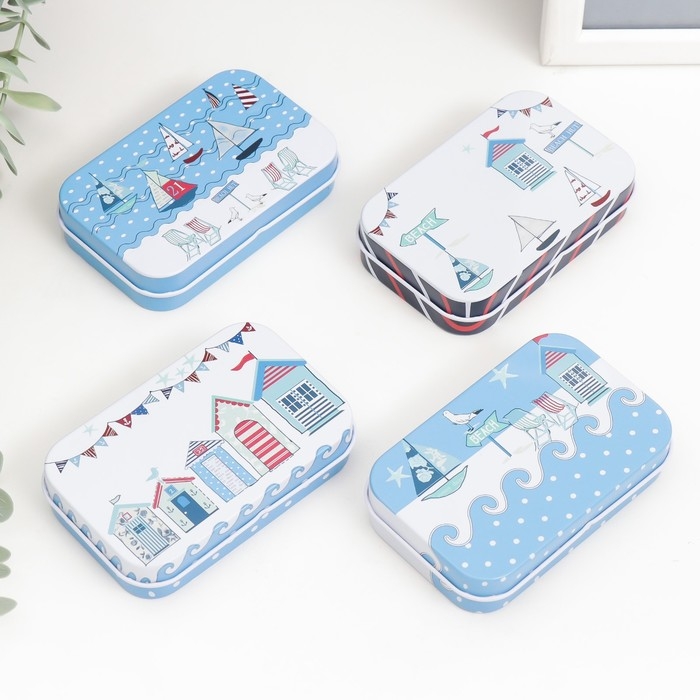 Шкатулка металл прямоугольная "Морской бриз" МИКС 5,8х9,5х2,2 см