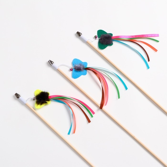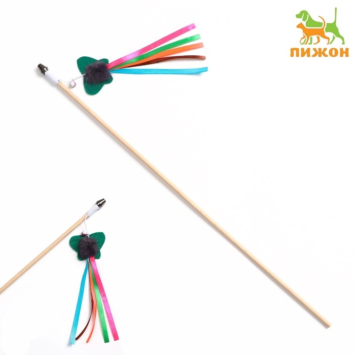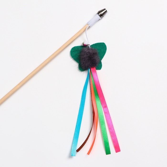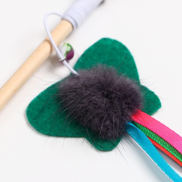 Дразнилка - удочка "Фетровая бабочка с норкой и лентами" на деревянной палочке, микс цветов