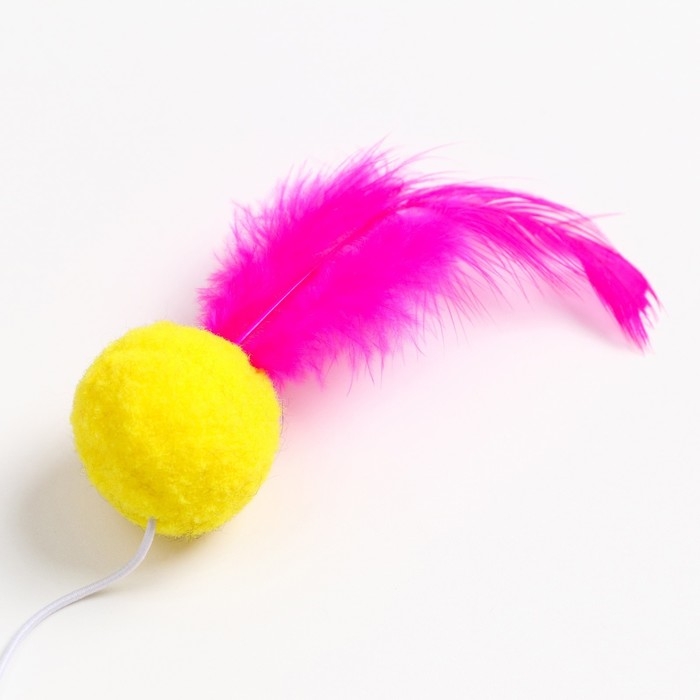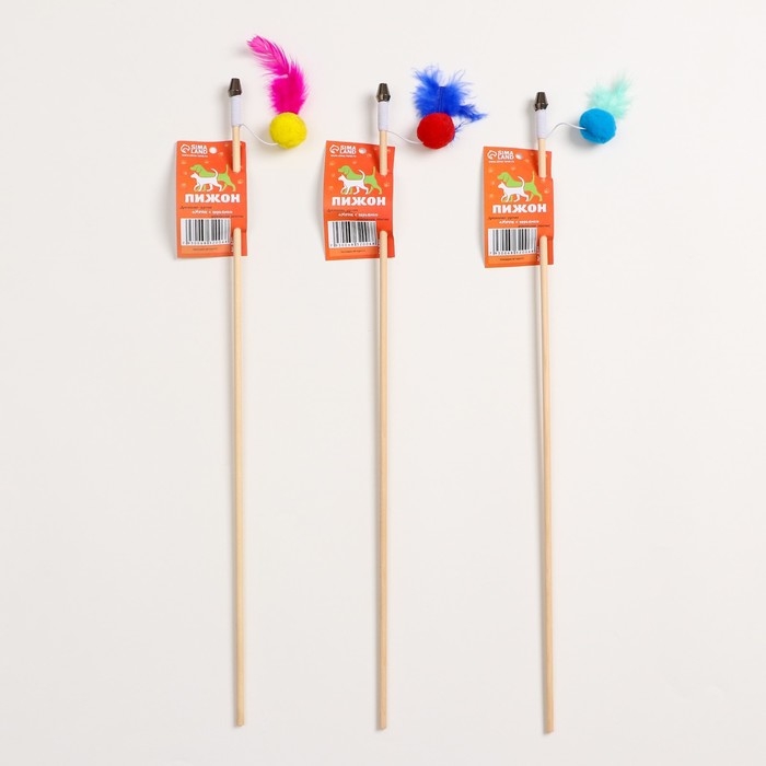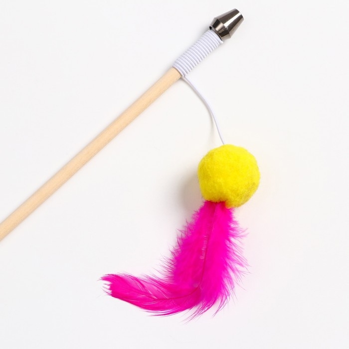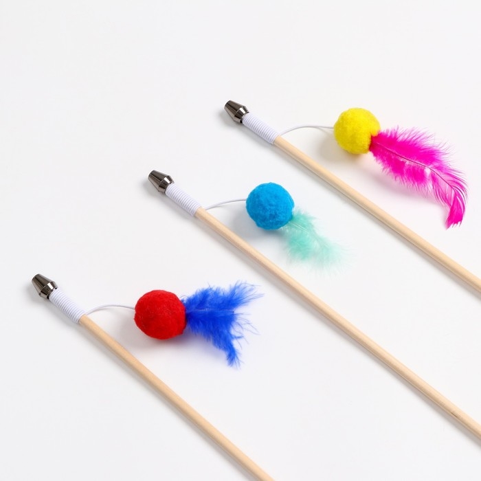 Дразнилка - удочка "Мячик с перьями" на деревянной палочке, микс цветов