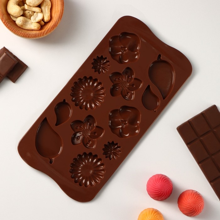 Форма для шоколада Доляна «Цветение», силикон, 21×10,5×0,7 см, 12 ячеек