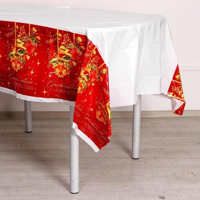 Новогодняя скатерть одноразовая «Счастливого нового года», 137х180 см