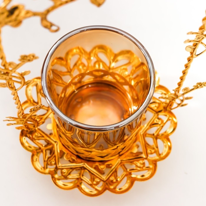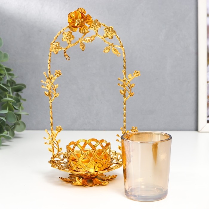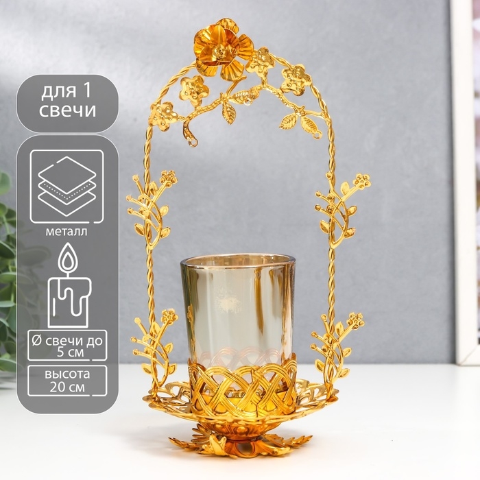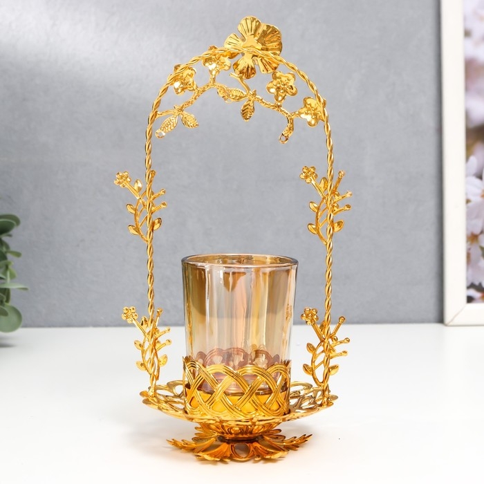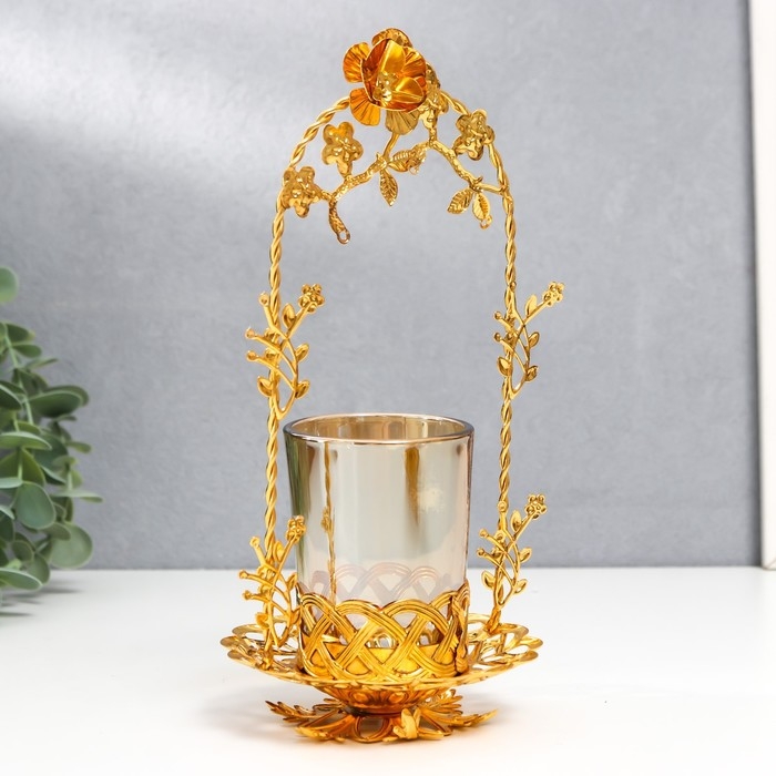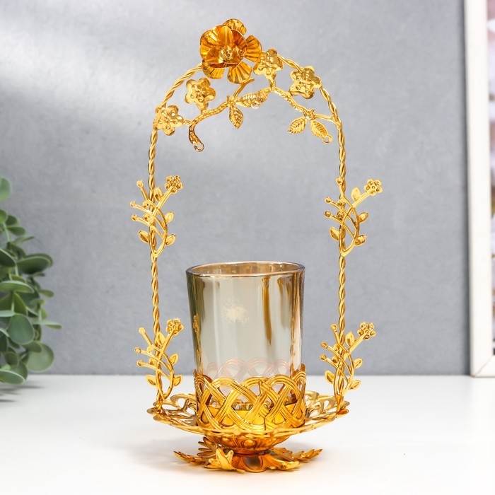 Подсвечник металл, стекло на 1 свечу "Цветочная арка" d-5 см, золото 9,5х11х20 см