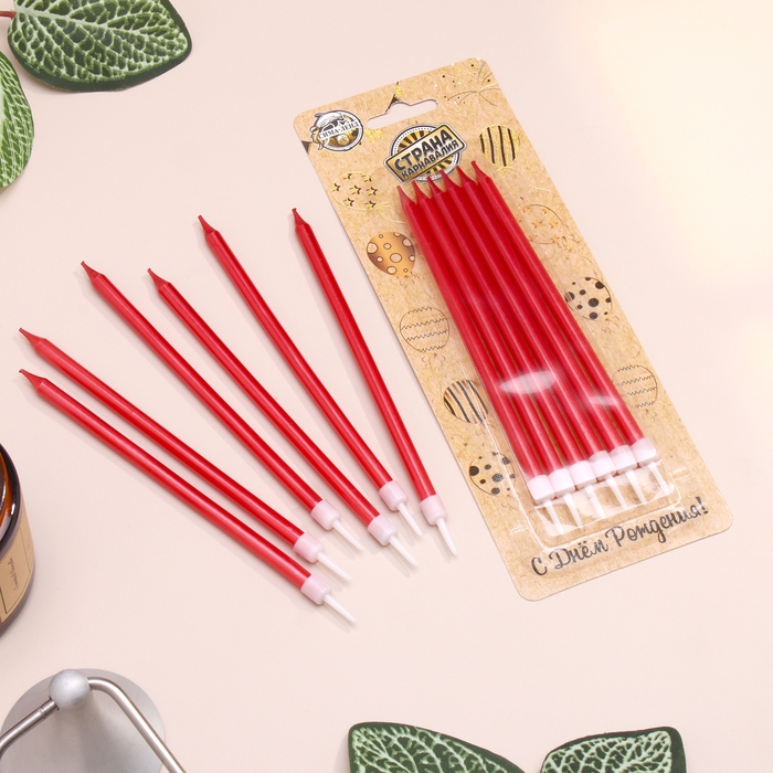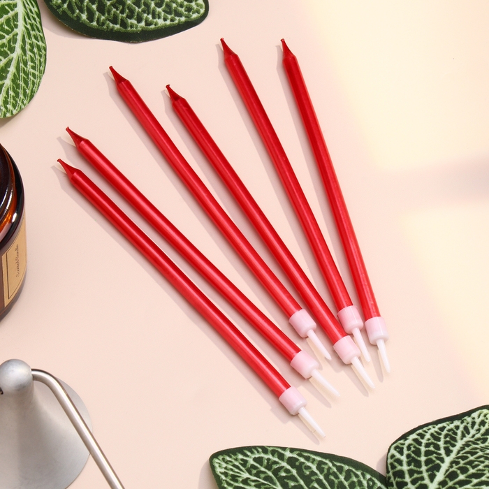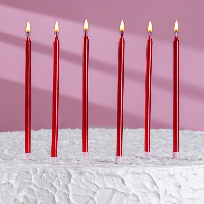 Свечи в торт "Ройс", 6 шт, высокие, 12,5 см, рубиновый металлик