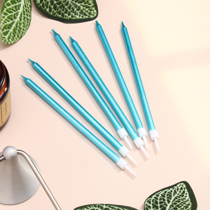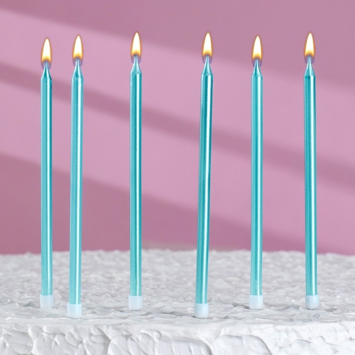 Свечи в торт "Ройс", 6 шт, высокие, 12,5 см, небесно-голубой металлик
