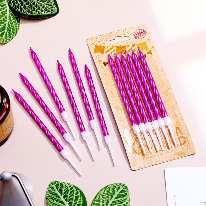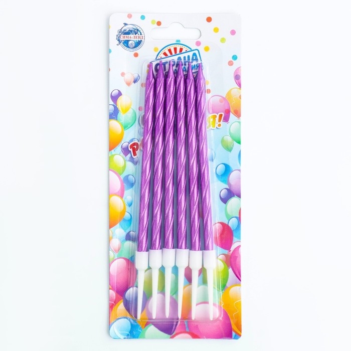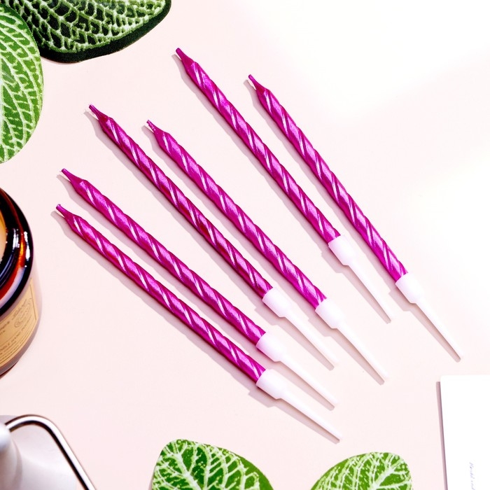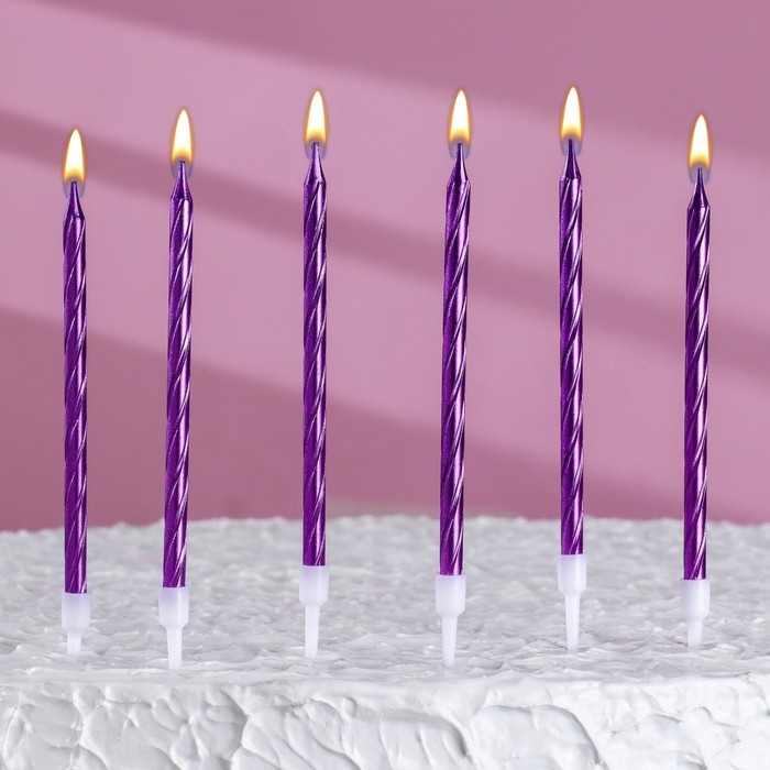 Свечи в торт витые с подставкой, 6 шт, 11 см, фиолетовый