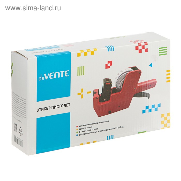 Этикет-пистолет "deVENTE" 1-строчный, 8 символов, для прямоугольных этикеток 21x12 мм, красный цвет корпуса.