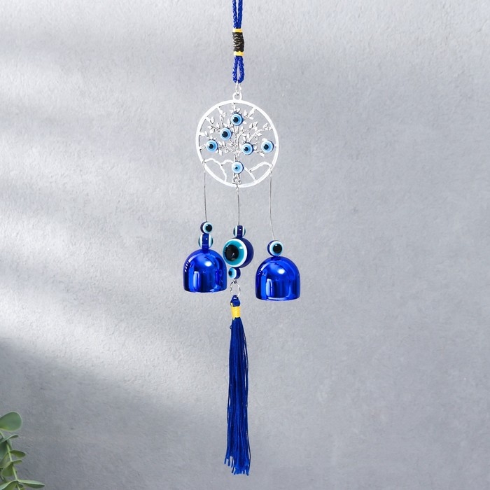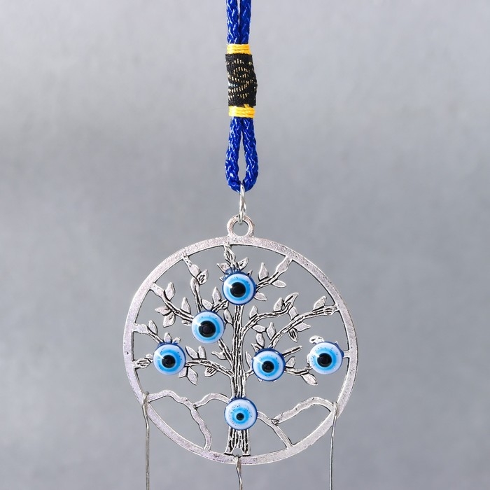 Музыка ветра металл "Дерево жизни в круге" от сглаза с кисточкой 2 колокольчика 22х6,5 см