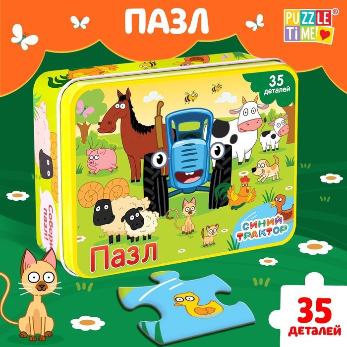 Пазл в металлической коробке «Синий трактор», 35 деталей