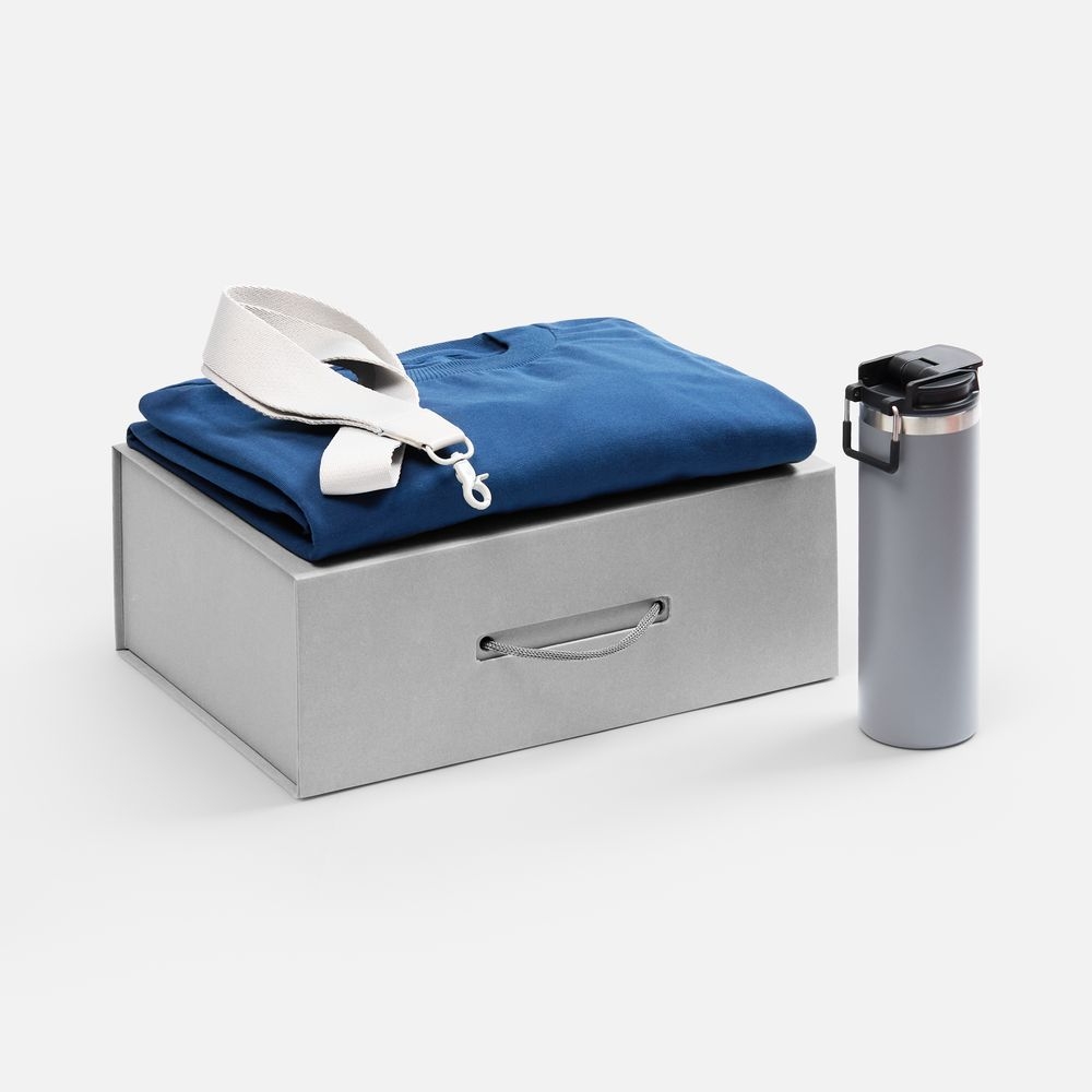 Коробка Horizon с ложементом под ежедневник и ручку, синяя