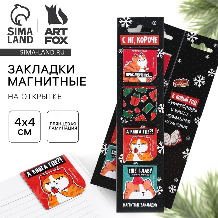 Новый год. Закладки для книг магнитные в открытке «С НГ, короче», 4 шт