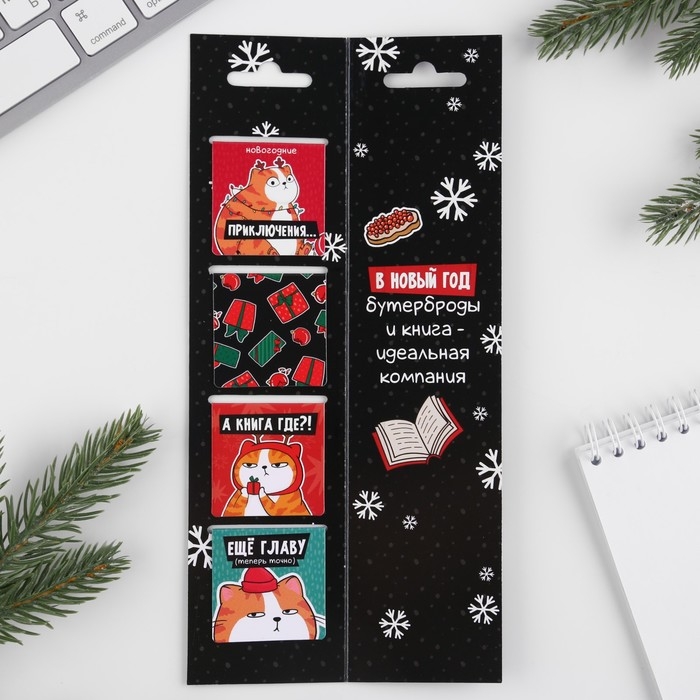 Новый год. Закладки для книг-стикеры «Ставь ёлку, я отвлеку кота», 4 шт, 20 л