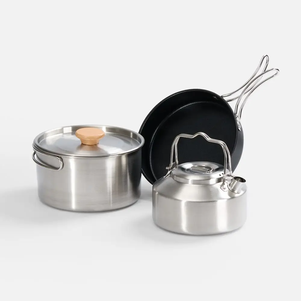 Набор компактной посуды Stackado незаменим для пикников, кемпинга, альпинизма, рыбалки и других приключений на свежем воздухе. В набор входят кастрюля, сковорода и чайник — все необходимое для полноценного приготовления блюд: от утреннего кофе до обеденного супа и ужина с жареными овощами.