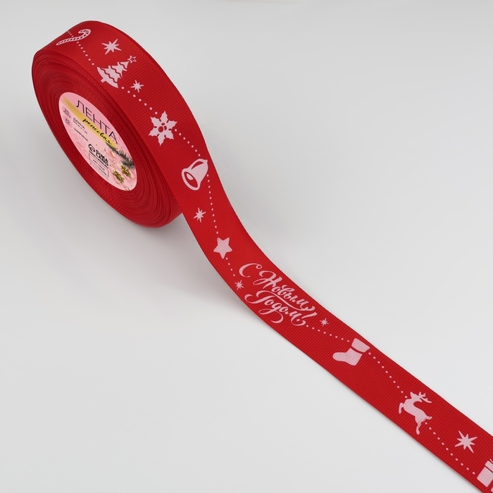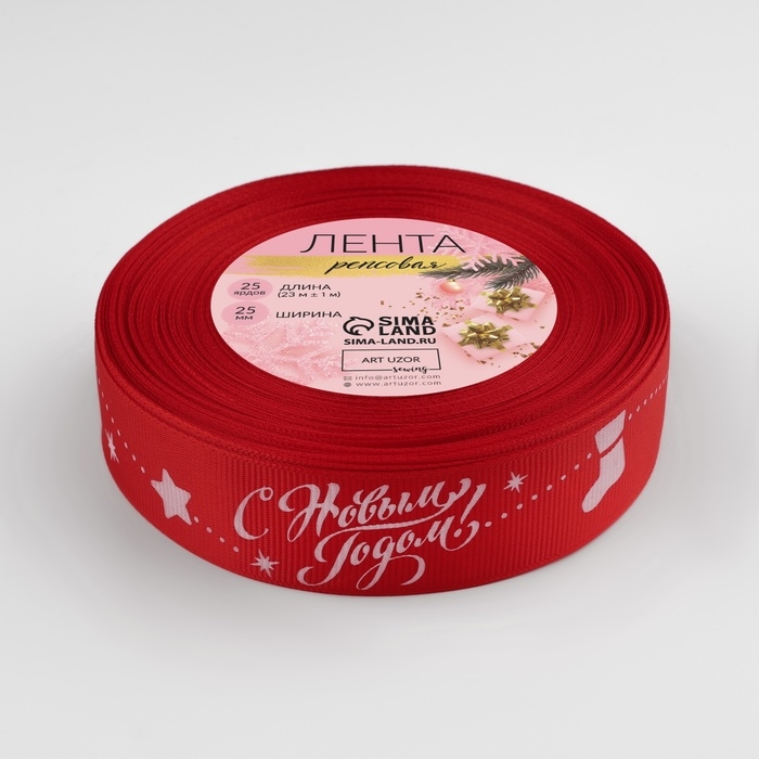 Новый год! Лента репсовая «Гирлянда», 25 мм, 23 ± 1 м, цвет красный №33