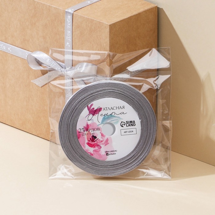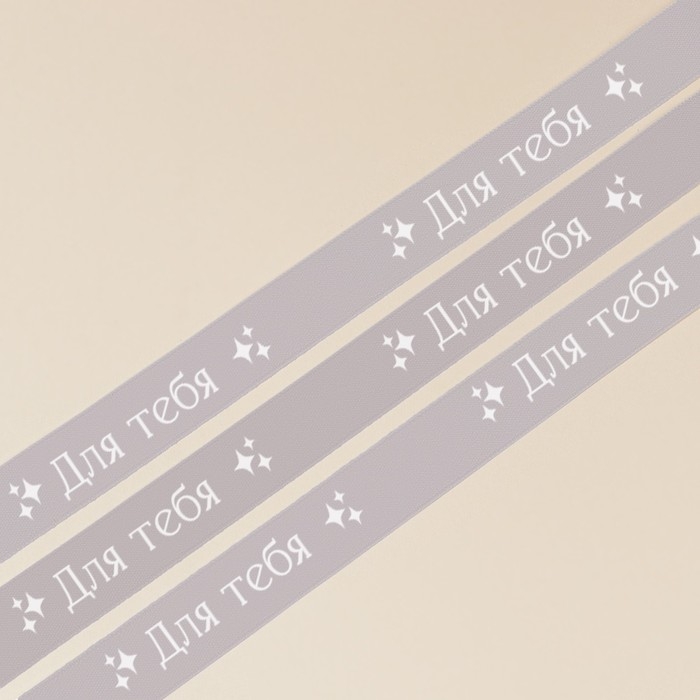 Лента атласная, подарочная упаковка, «Для тебя», серая, 1 см х 22.5 м
