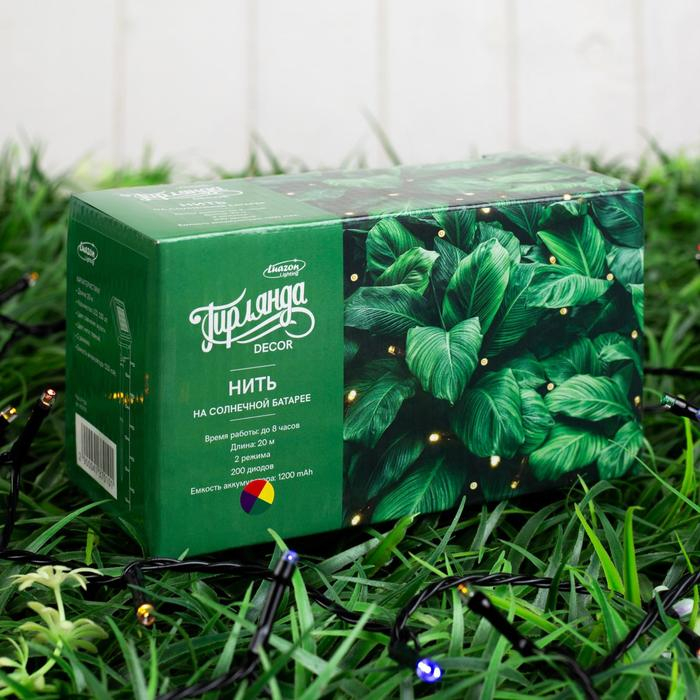 Гирлянда «Нить» 20 м, тёмная нить, 200 LED, свечение мульти, 2 режима, солнечная батарея