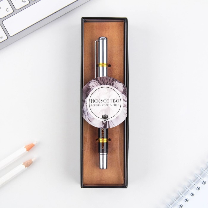 Ручка металл с колпачком «Искусство всегда современно», фурнитура серебро, 1.0 мм