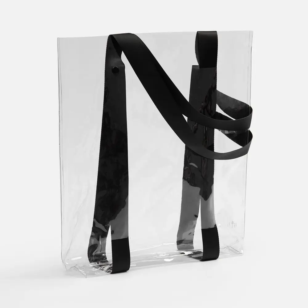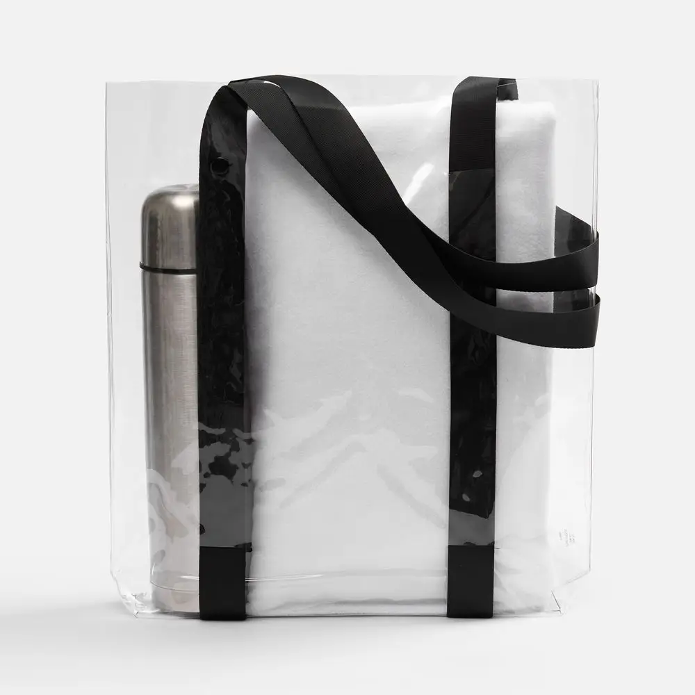Прозрачные сумки никогда не выйдут из моды. А цветные ручки легко впишутся в брендбук и точно передадут настроение, которое хотелось бы транслировать.