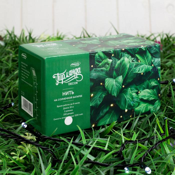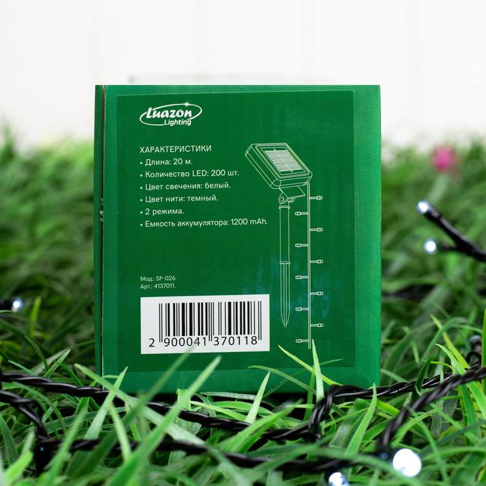 Гирлянда «Нить» 20 м, IP44, тёмная нить, 200 LED, свечение белое, 2 режима, солнечная батарея