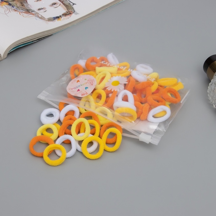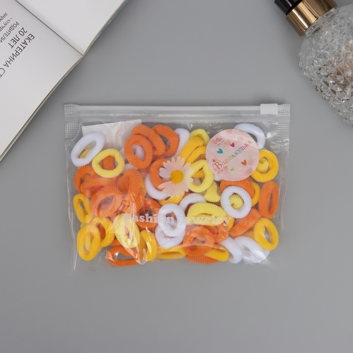 Резинка для волос "Махрушка" (набор 80 шт) нежность, 2,5 см, белый жёлтый оранж