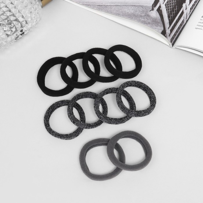 Резинка для волос "Синди" (набор 10 шт) туман, 4,5 см, серо-чёрный