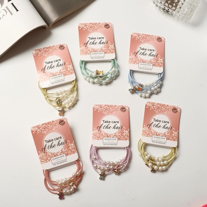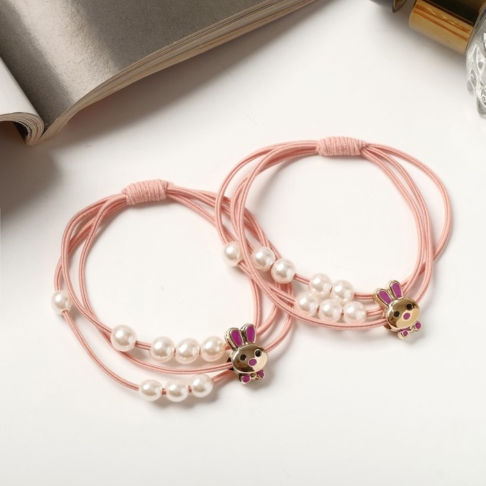 Резинка для волос "Авелин" (набор 2 шт) киска бусинки, микс