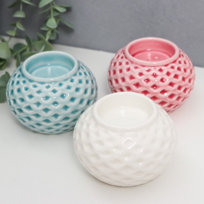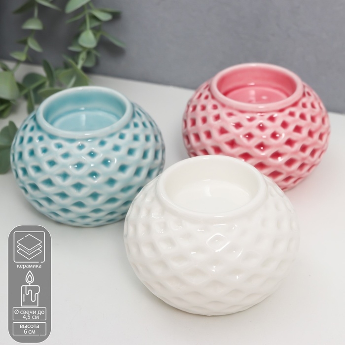 Подсвечник керамика на 1 свечу "Сетка с ромбами" МИКС 6х8х8 см