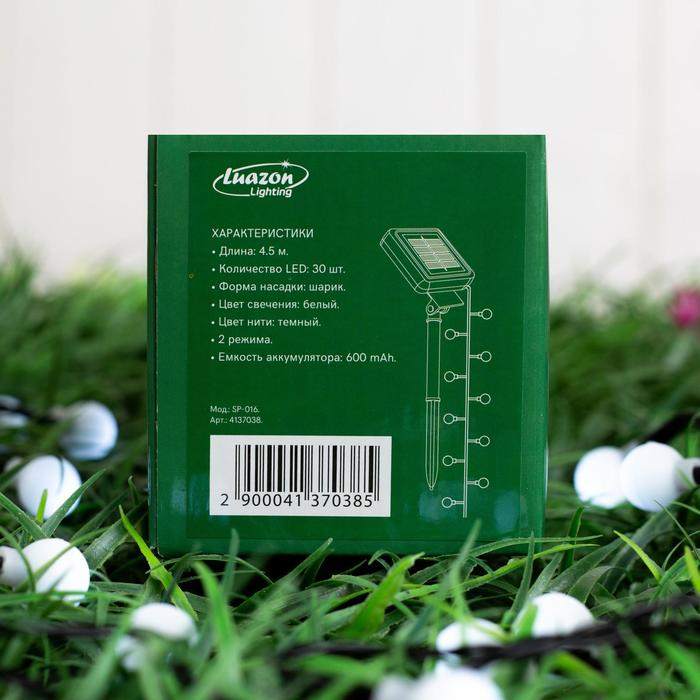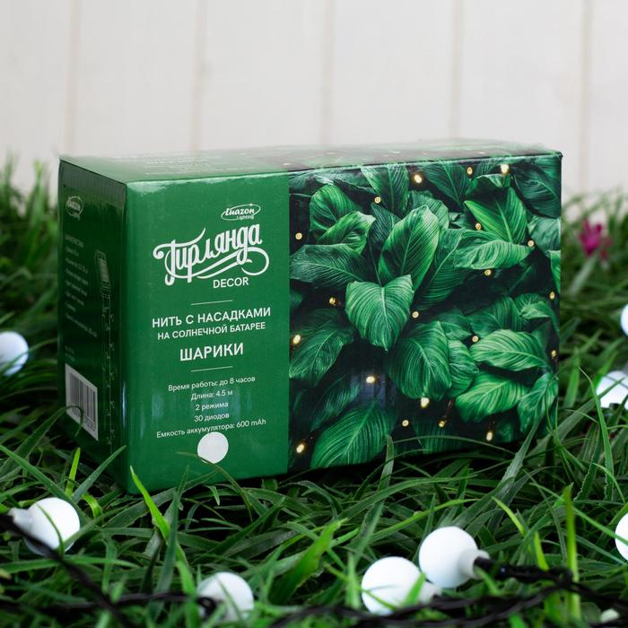 Гирлянда «Нить» 4.5 м с насадками «Шарики», IP44, тёмная нить, 30 LED, свечение белое, 2 режима, солнечная батарея