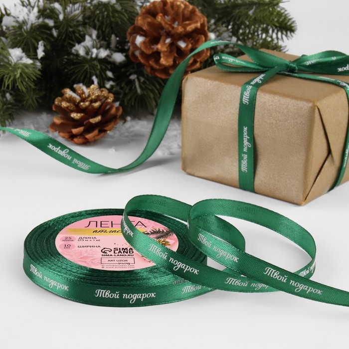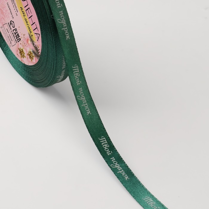 Новый год! Лента атласная «Твой подарок», 10 мм, 23 ± 1 м, цвет зелёный №56