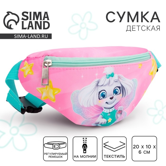 Сумка детская для девочки поясная «Собака» 20 см х 10 см х 6 см