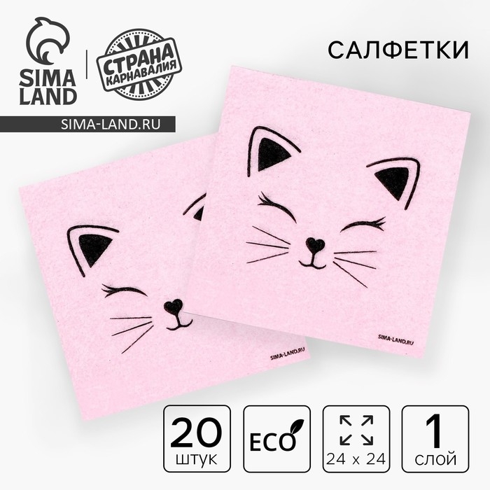 Салфетки бумажные однослойные «Кошечка», 24 × 24 см, в наборе 20 шт.