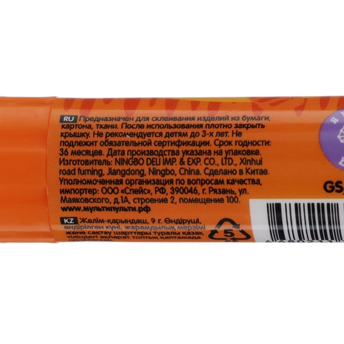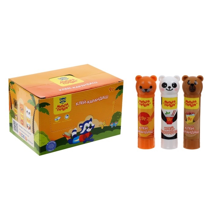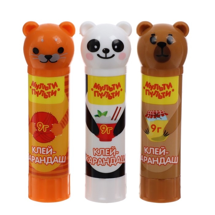 Клей-карандаш PVP 9г Мульти-Пульти "Зверята: Кот, Мишка, Панда", колпачок в форме животного