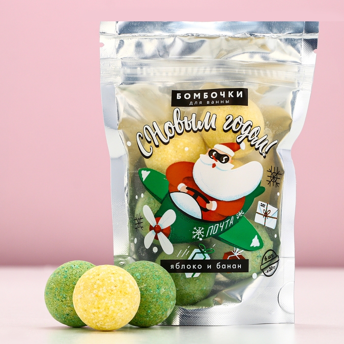 Подарочный набор косметики «С Новым Годом!», бомбочки для ванны, 6 х 20 г, аромат яблока, ЧИСТОЕ СЧАСТЬЕ