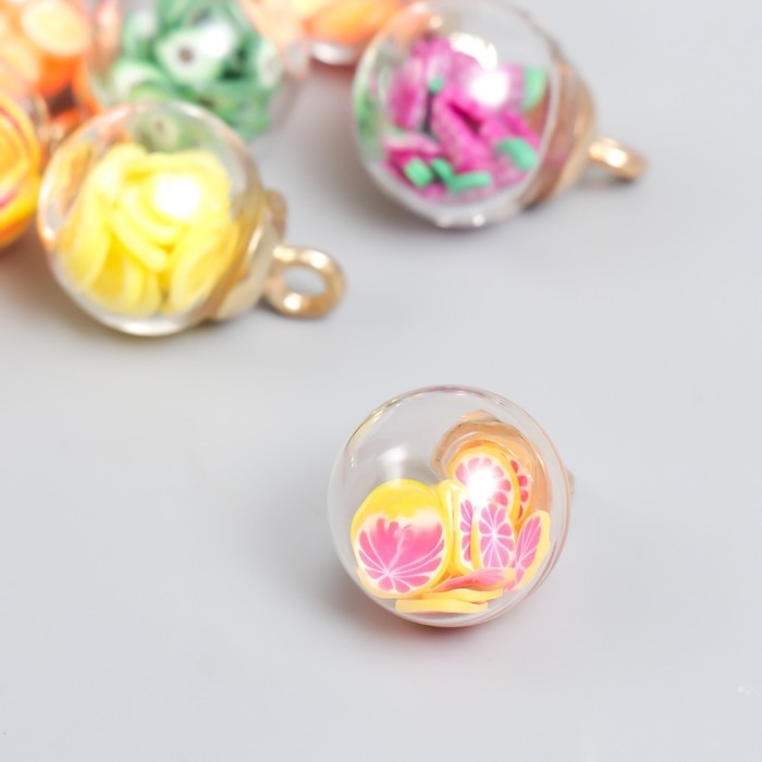 Подвеска для творчества стекло, пластик "Фрукты в шаре" набор 10 шт 2х1,8 см