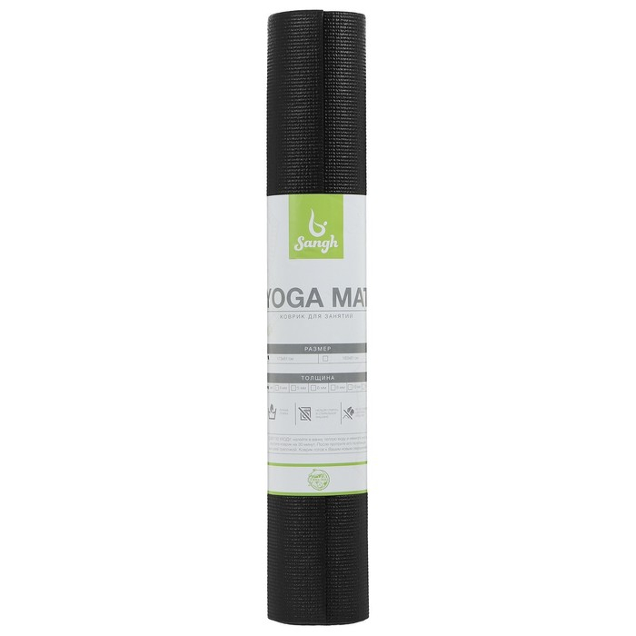 Коврик для йоги Sangh, 173х61х0,3 см, цвет чёрный