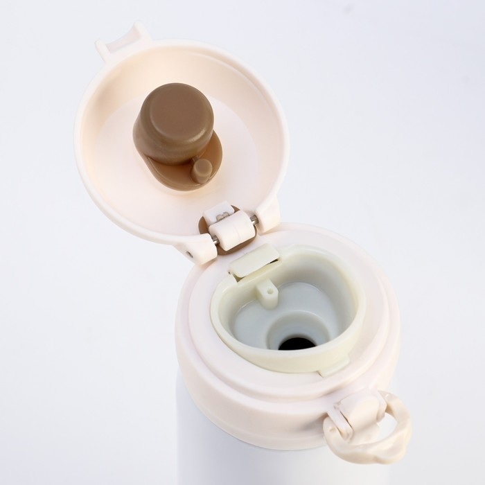 Термос (термокружка) сделан из нержавеющей стали 18/8, сконструирован по вакуумной технологии, с двойной стенкой, следовательно, долго держит тепло и не проливается. Снабжен откидывающейся крышкой, изготовленной из экологичного пищевого пластика, имеется кнопка, позволяющая с легкостью использовать термос одной рукой.
