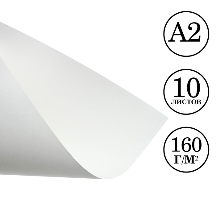 Бумага для рисования А2, 10 листов, блок 160 г/м2