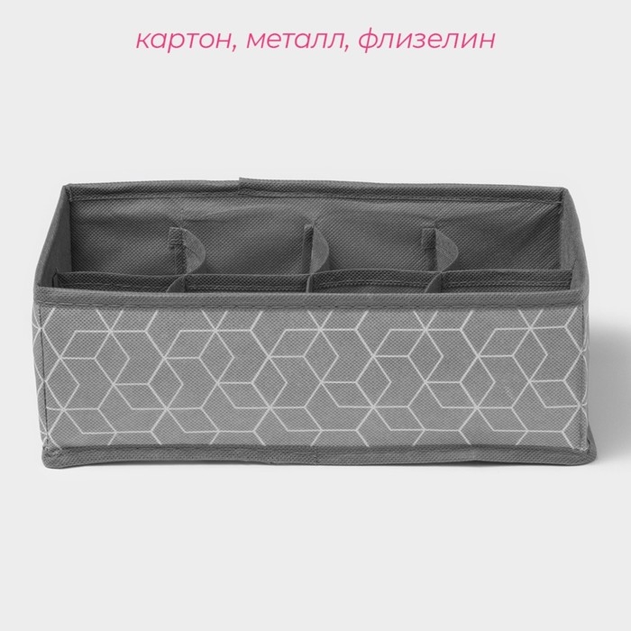 Органайзер для хранения белья Доляна «Нея», 7 ячеек, 34×30×8 см, цвет серый