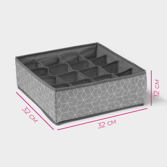 Органайзер для хранения белья Доляна «Фора», 16 ячеек, 32×32×12 см, цвет серый