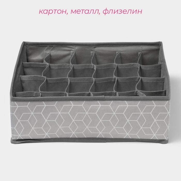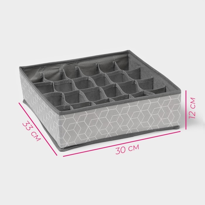 Органайзер для хранения белья Доляна «Фора», 24 ячейки, 30×33×10 см, цвет серый