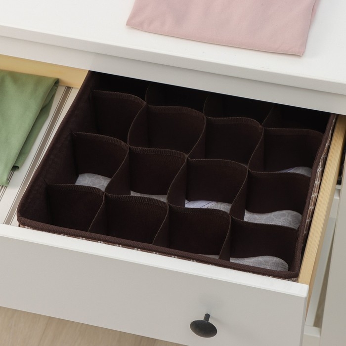 Органайзер для хранения белья Доляна «Браун», 12 ячеек, 32×24×12 см, цвет коричневый
