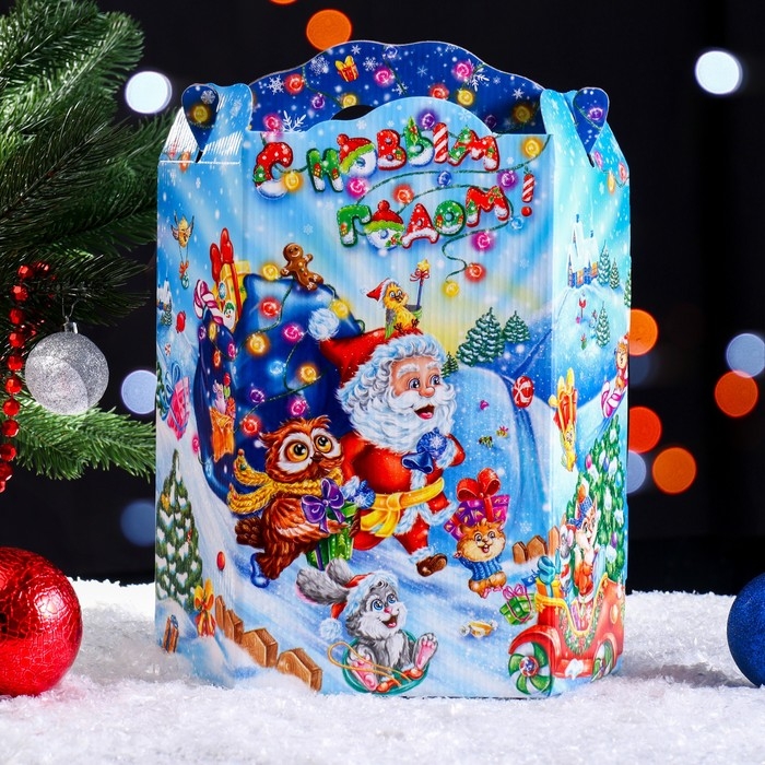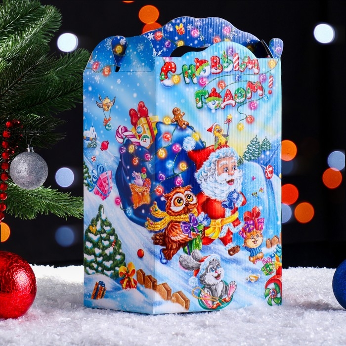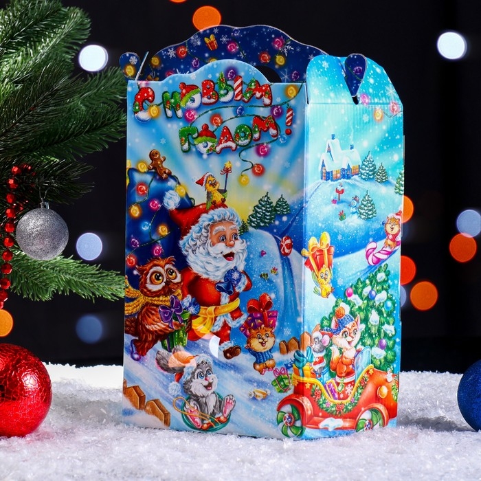 Упаковка для подарка является неотъемлемым атрибутом любого подарка. Подобранная со вкусом упаковка придаст подарку еще большую ценность. Материал изделия - картон. Коробка складная прекрасно подойдет для оформления подарка на - Новый год. Наполнить можно конфетами и различными новогодними сувенирами.